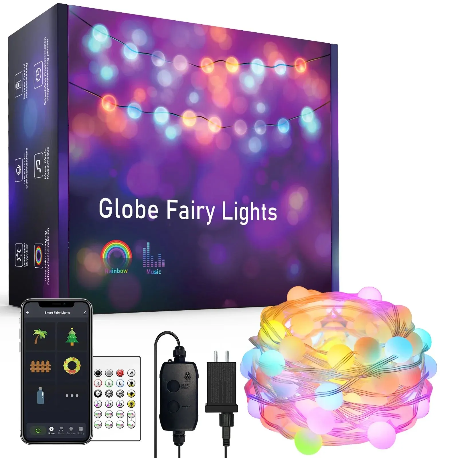 Guirlande lumineuse féérique LED RGB 33 ampoules WiFi BLE pour extérieur. Compatible avec Alexa et Google Voice.