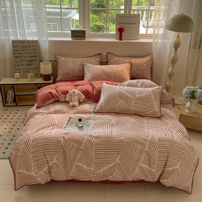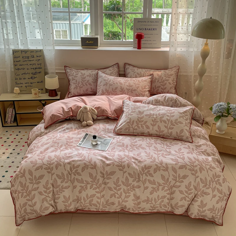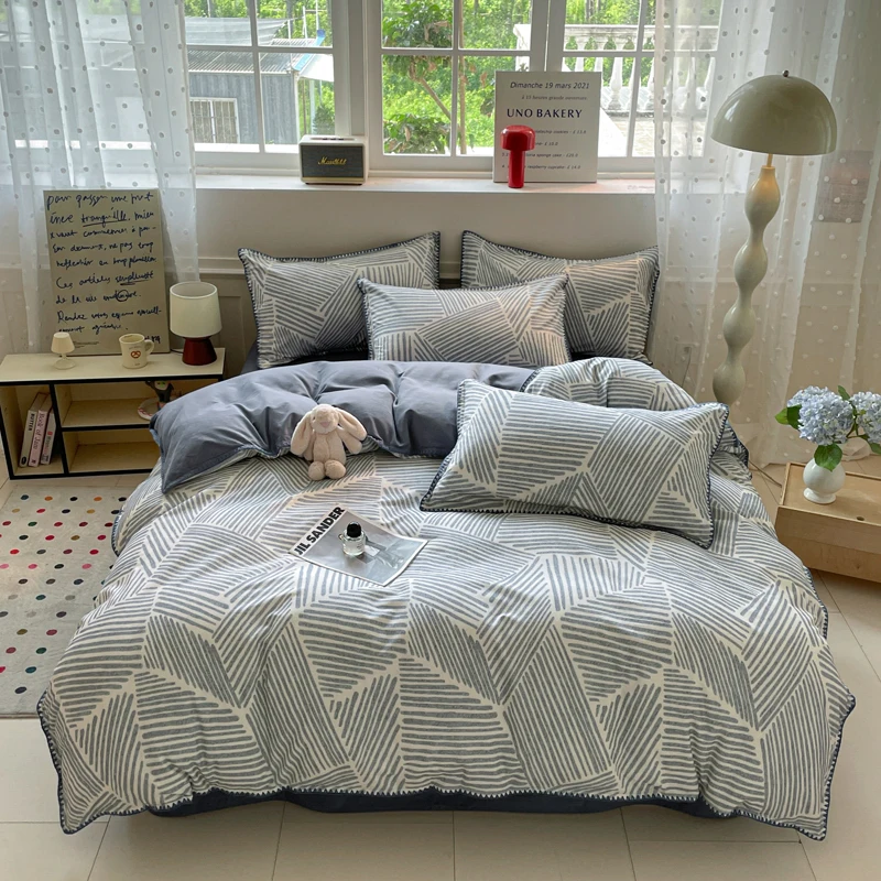 Parure de lit de luxe en coton épais 100 % coton lavé de qualité supérieure, housse de couette, décoration intérieure confortable, taille king, ultra douce et respirante